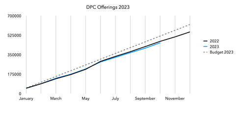 This year the monthly offerings have been consistently coming under budget (except for June which was a great month).